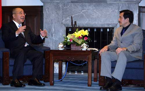 中新網(wǎng)6月1日電 馬英九五月三十一日晚間接見中國國民黨主席吳伯雄等中國國民黨大陸訪問團成員。馬英九說,吳伯雄此行圓滿成功,肯定吳伯雄的貢獻,慰勉吳伯雄的辛勞。