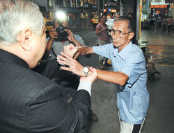 中新網(wǎng)6月19日電 因釣魚島撞船事件被臺(tái)當(dāng)局召回的臺(tái)當(dāng)局“駐日代表”許世楷18日下午遭一名名叫蘇安生的男子當(dāng)街?jǐn)r阻沖撞,許雖低調(diào)未提出傷害告訴,警方仍依違反社會(huì)秩序維護(hù)法將蘇某移送法辦。