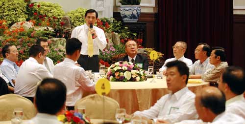 馬英九、蕭萬長昨天和國民黨主席吳伯雄等黨務系統(tǒng)人士座談。(“中央社”圖)