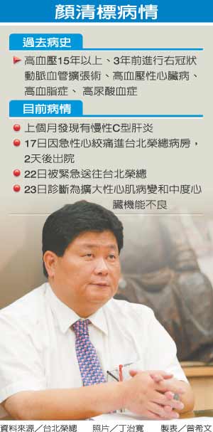 據(jù)臺(tái)灣《聯(lián)合報(bào)》報(bào)道,外界質(zhì)疑顏清標(biāo)裝病逃避入監(jiān),其主治醫(yī)師周嘉裕表示,顏清標(biāo)的心臟明顯擴(kuò)大,有嚴(yán)重肺積水等病癥。他反問:“像肺水腫這種,怎么假裝?”