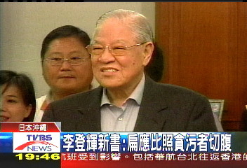 據(jù)臺灣TVBS報道,有記者問:“你說如果貪污都要切腹對不對?”李登輝說:“對啊,沒切腹不行啊!人就要客氣一點、謙卑一點,不要拿人家的錢在那邊大聲喊!
