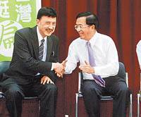 陳水扁與余天(左)會面。(圖:臺灣《蘋果日報》)