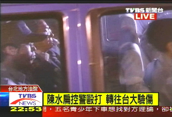 陳水扁今天深夜10點(diǎn)45分左右坐車前往臺大醫(yī)院驗(yàn)傷(臺灣TVBS圖)