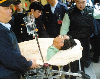 陳水扁因長期禁食,身體虛弱,昨晚接受亞東醫(yī)院檢查時發(fā)現(xiàn)體重直線下降,比起剛?cè)胨倭?公斤,雖然每天陳水扁飲用水量約在兩三千毫升,但仍呈現(xiàn)嚴(yán)重脫水狀況。