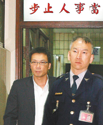 因陳水扁家族弊案而遭收押的臺灣前“總統(tǒng)府副秘書長”馬永成(左),9日以50萬元交保并限制住居、出境,在法警陪同下,離開臺北地方法院。圖片來源:臺灣《聯(lián)合報》