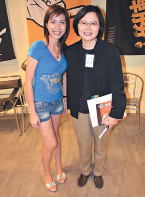 這是民進黨主席蔡英文的博客,不過,一點進去就會發(fā)現(xiàn),原本清純的七年級小秘書杰奎琳不見了,現(xiàn)在第二代輕熟女小秘書磁力接棒,博客的第一篇文章就可以看到磁力巧笑倩兮的模樣,身材窈窕的她笑容相當(dāng)甜美,與黨主席蔡英文合照里,穿短褲有著一雙修長美腿,讓不少宅男網(wǎng)友覺得真的是太辣了。
