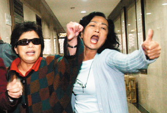 場外聚集抗議及支持民眾,各自表述大喊“扁嫂加油”、“吳淑珍關(guān)起來”,兩方人馬各約四十人,比采訪扁案的記者及維持秩序的警力還少。