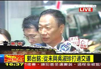 記者問:“關(guān)于吳淑珍陳報(bào)狀所述,3000萬的政治獻(xiàn)金,是由您這邊支付的嗎?”郭臺(tái)銘說:“我回答,沒有。”記者再問:“沒有捐款給扁家3000萬嗎?”郭臺(tái)銘重申:“沒有!庇浾呓又鴨枺骸澳窃趺磿(huì)傳出這樣的說法?”郭臺(tái)銘面露無奈地說:“我也不曉得!