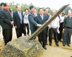 中新網(wǎng)3月30日電 金門與廈門預(yù)定8月共同舉辦“橫渡金廈海上長泳”活動,在臺訪問的廈門市長劉賜貴29日由金門縣長李炷烽陪同至小金門雙口海岸實地勘查。針對縣府基于確保選手安全,將協(xié)調(diào)軍方拆除1000米反登陸“軌條砦”,他強調(diào)這意味著將兩岸過去敵對、對峙的軍事設(shè)施也清除掉,是一件“好事!”
