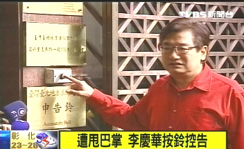 中新網(wǎng)4月22日電 據(jù)臺(tái)灣TVBS報(bào)道,國(guó)民黨“立委”李慶華今日在“立法院”里被民進(jìn)黨“立委”邱議瑩甩了一巴掌,李慶華下午2點(diǎn)多到法院按鈴控告邱議瑩公然侮辱。