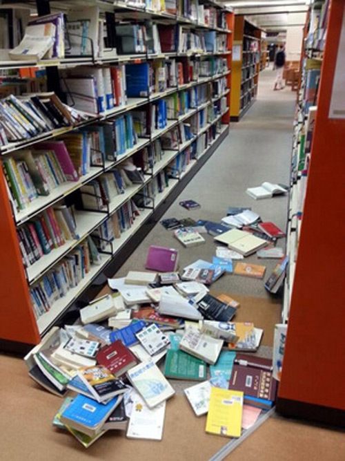 臺(tái)灣南投6.7級地震 圖書館書籍掉落一地