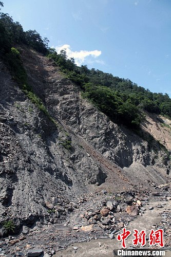 實(shí)拍南投地震山石崩落沙石覆蓋山體
