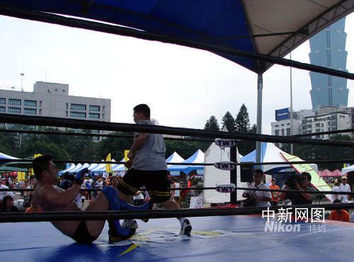 九個(gè)展區(qū)、一百六十二個(gè)攤位,處處都很熱鬧。臺灣明年九月要舉辦“聽障奧運(yùn)”,殘障人士組織的“阿甘精神發(fā)展協(xié)會”的攤位放在很顯眼的地方;“臺灣摔角聯(lián)盟”搭起了高臺,正在現(xiàn)場示范教學(xué),大力士裝著一次又一次地被重重摔在角斗臺上,惹得幾個(gè)學(xué)生模樣的小孩蠢蠢欲動,爭著要跟大力士切搓。