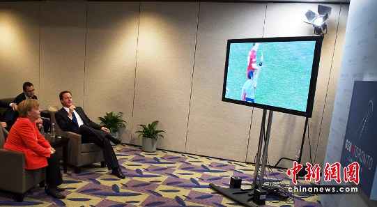 默克爾是一位著名的球迷領(lǐng)導(dǎo)人,德國(guó)隊(duì)上一場(chǎng)與英格蘭隊(duì)的比賽時(shí),當(dāng)時(shí)正在加拿大參加G20領(lǐng)導(dǎo)人峰會(huì)的默克爾就忙里抽閑,和英國(guó)首相卡梅倫一起觀看了這場(chǎng)比賽。比賽中裁判的一個(gè)判罰引發(fā)爭(zhēng)議,不過(guò)德國(guó)隊(duì)最終4比1大勝英格蘭隊(duì)。