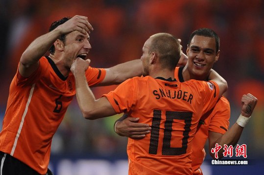 當兩隊再度上場,在很多人的心里,眼前的比賽已經(jīng)幾乎沒有懸念,很少有人能逆轉(zhuǎn)占據(jù)領先的“五星巴西”。剛剛過去的45分鐘里,在巴西人圓熟又實用的打法面前,荷蘭人甚至難有威脅,尖刀式人物羅本已經(jīng)被牢牢盯死,“橙衣軍團”還有誰能改變局面——沒人會想到斯內(nèi)德。