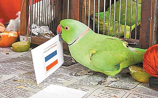 報道稱,“神鳥”曼尼13歲,主人是80歲算命師穆尼亞龐(M.Muniyappan),曼尼走出鳥籠,在印有西班牙和荷蘭國旗的紙牌中,用嘴叼出荷蘭牌,之前4強賽,曼尼也猜中西班牙贏球。