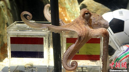 中新網(wǎng)7月12日電 南非世界杯?冠軍西班牙隊?不,這屆世界杯也許應(yīng)該改成“章魚”世界杯,而冠軍和頭號明星不是西班牙隊的冠軍隊員,也不是奪取金球獎的烏拉圭人弗蘭,更不是烏鴉嘴貝利或阿根廷隊主帥馬拉多納,而是德國的章魚保羅!