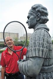 2007年,上海大師杯賽組委會(huì)邀請(qǐng)法國女雕塑家勞芮·迪岑格蕾麥爾與來自四川美術(shù)學(xué)院的申曉楠、張亞西夫婦組成了“始作俑者”,為當(dāng)年參賽的八位大師塑像。沒想到創(chuàng)意一炮而紅,現(xiàn)八座兵馬俑雕像被運(yùn)至溫布爾登網(wǎng)球博物館永久留存。