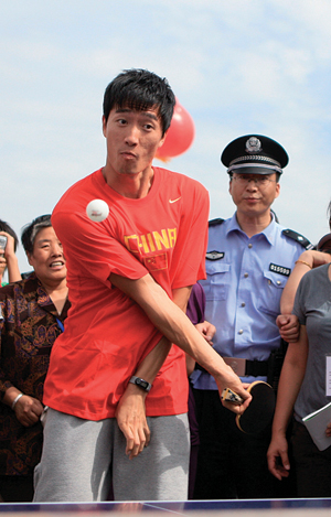 在劉翔作為奧運(yùn)冠軍代表致辭后,當(dāng)天的與市民互動(dòng)活動(dòng)也拉開了序幕,劉翔把自己的各個(gè)絕活兒全部亮相,陪市民打乒乓球、踢毽子,十分賣力。他一如既往地用上了自己的搞怪天賦,旁邊圍觀的市民都說他“沒架子,很隨和”。事實(shí)上,作為全民健身志愿者,劉翔之前已經(jīng)參加過上海的全民健身活動(dòng),還在盧灣體育館和市民一起打起了羽毛球。受傷不玩大球項(xiàng)目的劉翔,在乒羽等小球上頗有“功力”,曾經(jīng)還在莘莊基地工會(huì)組織的職工運(yùn)動(dòng)會(huì)上參加田徑隊(duì)打過乒乓球賽并取得好成績。