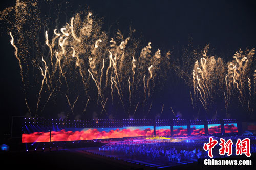 當(dāng)晚的開幕式文藝演出在新落成的那達慕大會會場舉行,由《夢回草原》、《夢醒草原》、《夢圓草原》和《鄂爾多斯乘著夢的翅膀》等四個篇章組成,包括騰格爾、德德瑪、鳳凰傳奇等蒙古族藝術(shù)家以及維塔斯、wonder girls組合等國際明星的助陣,讓夜色中的鄂爾多斯綻放出耀眼的光芒。