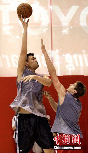 中新網8月25日電 北京時間今日據美聯(lián)社報道,美國當?shù)貢r間周二,姚明在火箭隊主場豐田中心進行了公開恢復性訓練。