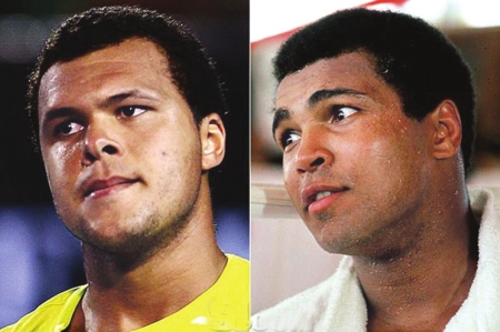 自從特松加一炮走紅時(shí),他就被外國(guó)媒體送上了一個(gè)綽號(hào)——法國(guó)阿里,這位高大的法國(guó)小伙子的確和拳王阿里非常相似,不論是他虎背熊腰的身材還是他憨厚的表情,特松加都酷似拳王。而更讓人驚訝的是,略帶點(diǎn)野性的特松加喜歡“吞網(wǎng)球”,他在球場(chǎng)上靈活的步伐似乎也有阿里蝴蝶舞步的影子。