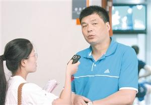 主教練俞覺敏(右)正在接受本報(bào)記者采訪