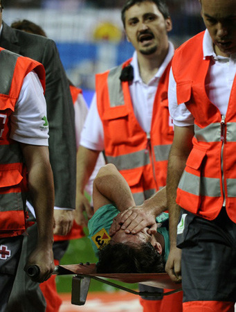 巴薩2-1客場(chǎng)戰(zhàn)勝馬德里競(jìng)技,贏得比賽勝利的同時(shí)也付出了慘重的代價(jià),比賽進(jìn)行到補(bǔ)時(shí)第2分鐘,梅西在帶球過程中被馬德里競(jìng)技后衛(wèi)烏伊法盧西踩中腳踝受傷,被擔(dān)架抬離賽場(chǎng)。痛苦不已的梅西在擔(dān)架上雙手掩面,而腳踝夸張的浮腫程度也預(yù)示著這次受傷的嚴(yán)重性。盡管烏伊法盧西因此被直接紅牌罰下,也難改梅西右腳踝韌帶損傷的事實(shí)。