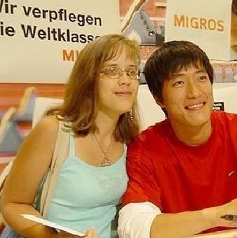 劉翔與外國女翔迷:2005年8月17日,中國的奧運(yùn)冠軍劉翔和美國的百米飛人格林一起,來到蘇黎世一家名為MIGROSCITY的商場為市民現(xiàn)場簽名。在前面期間,一位劉翔重視的粉絲們有幸坐在身邊,將這最幸福的一刻定格下來。