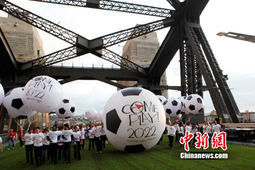為表達悉尼對澳大利亞申辦2022年FIFA世界杯的支持,一個印著“Come Play”字樣,高達四米的巨型足球沿著澳洲標志悉尼大橋的中心滾動,帶動起“來踢球”的熱忱與激情。