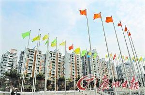 廣州亞運(yùn)城運(yùn)動員村的升旗廣場上彩旗飄飄,3天后,廣州亞運(yùn)城運(yùn)動員村將正式開村