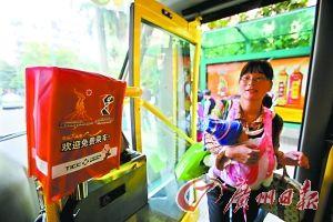 公交車上有免費(fèi)提示標(biāo)語。