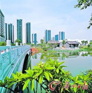 媒體村內(nèi)風景如畫,小橋流水令人愉悅。
