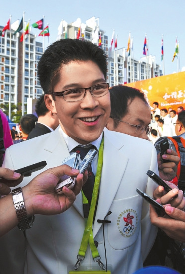 升旗儀式結束后,霍啟剛便和香港代表團的運動員們簇擁在一起合影留念,作為代表團副團長的他,自然沒有忘記自己的身份。“這一次你會去看跳水嗎?”當華西都市報記者將這個問題拋給霍啟剛時,他笑了一笑:“我就知道你要問我這個問題,在香港我就一直被問這個問題,到這里來還是被問這個問題,哈哈!被魡偟钠胀ㄔ挿浅藴,周圍的香港媒體聽到了霍啟剛這樣回答,也都笑了起來。