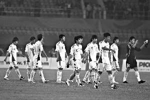 失利后國奧隊(duì)離場(chǎng),他們的亞運(yùn)之旅結(jié)束了。 吳江 攝