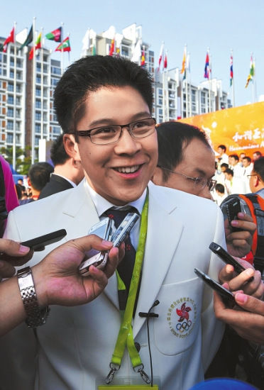 升旗儀式結(jié)束后,霍啟剛便和香港代表團的運動員們簇擁在一起合影留念,作為代表團副團長的他,自然沒有忘記自己的身份!斑@一次你會去看跳水嗎?”當(dāng)華西都市報記者將這個問題拋給霍啟剛時,他笑了一笑:“我就知道你要問我這個問題,在香港我就一直被問這個問題,到這里來還是被問這個問題,哈哈!被魡偟钠胀ㄔ挿浅(biāo)準(zhǔn),周圍的香港媒體聽到了霍啟剛這樣回答,也都笑了起來。