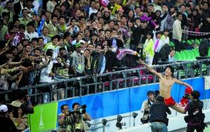 現(xiàn)場解說員也被劉翔的精彩表現(xiàn)折服了,變得語無倫次,他先是背誦了《周易》名句“天行健,君子以自強(qiáng)不息”,接著又忘情地高呼:“劉翔,你是天神!”