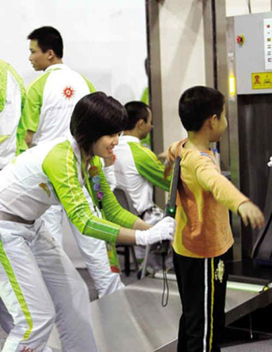 在體育場(chǎng)館安檢口工作的志愿者們,需要對(duì)每一位觀眾進(jìn)行前、后身從頭到腳的掃描,這意味著每檢查一個(gè)觀眾就要下蹲兩次。詹婷婷是廣東警官學(xué)院即將畢業(yè)的大三學(xué)生,作為亞運(yùn)志愿者,在廣州體育館安檢口的崗位上,她不斷地做著深蹲動(dòng)作,最多的一天超過2600次。