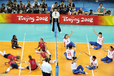 殘奧會(huì)坐式排球比賽方式與奧運(yùn)會(huì)排球比賽方式基本相同,但有部分特殊規(guī)定:例如坐式排球的比賽場(chǎng)地小于6人排球比賽場(chǎng)地;在比賽過程中運(yùn)動(dòng)員需坐在地上進(jìn)行比賽,其臀部必須保持與地面接觸,不允許站立和行走;在沒有妨礙對(duì)方完成技術(shù)動(dòng)作的情況下,允許隊(duì)員的手和腳越過中線;防守隊(duì)員可以直接攔截發(fā)球等。(來(lái)源: 亞殘運(yùn)會(huì)官方網(wǎng)站)