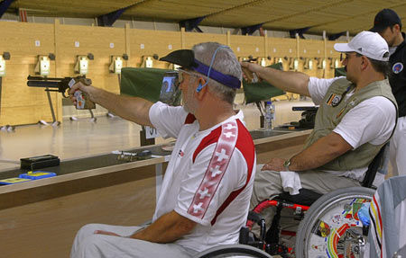 在殘奧會(huì)射擊比賽中,大多數(shù)運(yùn)動(dòng)員坐在輪椅上進(jìn)行比賽。因此,無論是臥射、立射還是跪射,對(duì)運(yùn)動(dòng)員姿勢(shì)的要求及競(jìng)賽規(guī)則都有特殊的規(guī)定;對(duì)比賽的場(chǎng)地、設(shè)施和器材也有特殊的要求。(來源: 亞殘運(yùn)會(huì)官方網(wǎng)站)