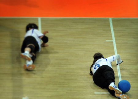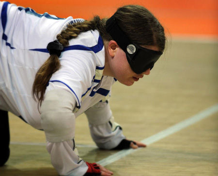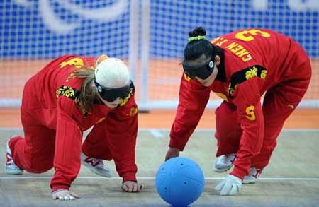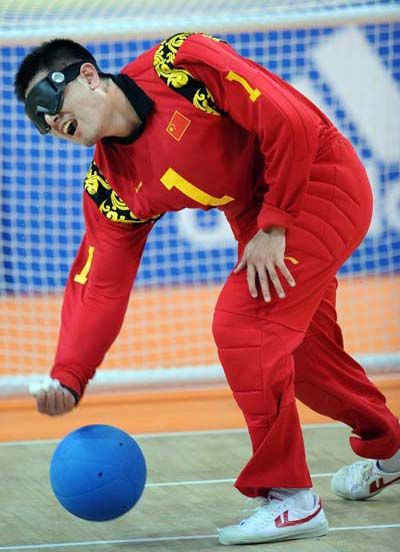 盲人門球運(yùn)動(dòng)是根據(jù)盲人視力障礙特點(diǎn)而專門設(shè)計(jì)的一項(xiàng)集體球類項(xiàng)目,它需要運(yùn)動(dòng)員根據(jù)觸覺來確定自己在場(chǎng)上的位置、方向;根據(jù)聽覺來判斷球的方向、速度,從而迅速做出反應(yīng)。這項(xiàng)運(yùn)動(dòng)的形式適合于盲人視覺功能障礙的局限,集安全性、競技性、觀賞性于一體,既突出運(yùn)動(dòng)員個(gè)人技術(shù)又強(qiáng)調(diào)團(tuán)隊(duì)配合。有人作了這樣的比喻:“盲人門球運(yùn)動(dòng)是一項(xiàng)球似籃球,球門似足球,而擲球動(dòng)作像保齡球的運(yùn)動(dòng)。” (來源: 亞殘運(yùn)會(huì)官方網(wǎng)站)