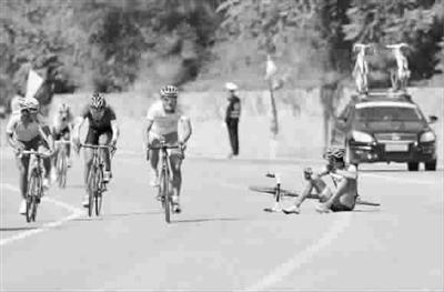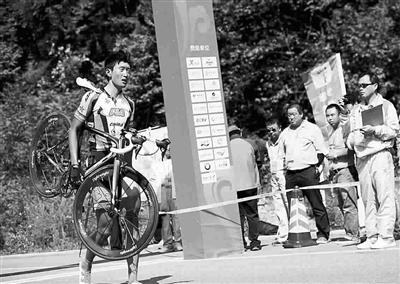 昨天在本溪進(jìn)行的第十二屆全運(yùn)會自行車男子公路個(gè)人賽中,解放軍隊(duì)選手吳佩倫在臨近終點(diǎn)沖刺時(shí)不慎摔倒(見上圖),但是他并未因此放棄比賽,而是扛著自行車走過終點(diǎn)線(見上圖),最終以4小時(shí)42分14秒的成績位列第26名。吳佩倫的行為,生動體現(xiàn)了永不言棄的體育精神,賽后他說:“我到這里,不是來聽發(fā)令槍的,而是要沖過終點(diǎn)線的!