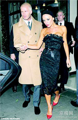 夫唱婦隨,維多利亞的穿著打扮也同樣的老氣橫生。當(dāng)晚維多利亞穿了一件鑲嵌蕾絲邊的連衣裙,腰間別了個(gè)蝴蝶結(jié),頭發(fā)盤起,頭上戴著黑色頭箍,臉上的妝依舊畫得很濃,還穿了雙紅色高跟鞋。不知道是擦得粉太重,還是新年活動(dòng)過(guò)于忙碌而體力透支,鎂光燈下的“辣妹”一臉慘白形像老態(tài)。英媒體諷刺這身打扮超出了她33歲的年齡,看起來(lái)簡(jiǎn)直可與丑劇大師馬塞歐比肩。(記者劉大偉)