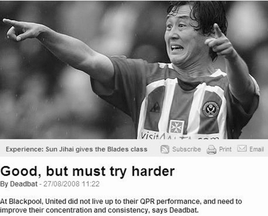 賽后英國(guó)專(zhuān)業(yè)足球網(wǎng)站《Rival》用“不錯(cuò),但要更加努力”的題目來(lái)形容這場(chǎng)比賽,畢竟主場(chǎng)平局對(duì)于謝菲聯(lián)隊(duì)來(lái)說(shuō)顯得有些可惜,他們本來(lái)有機(jī)會(huì)取得勝利。不過(guò)這家網(wǎng)站仍然夸獎(jiǎng)了幾名主場(chǎng)球員,中國(guó)球員孫繼海是其中之一,文章中如此評(píng)價(jià):“在周六的比賽中,孫繼海、斯皮德和埃希奧古使得刀鋒軍團(tuán)看起來(lái)?yè)碛懈嗟谋荣惤?jīng)驗(yàn),但是當(dāng)機(jī)會(huì)到來(lái)的時(shí)候,球隊(duì)并沒(méi)有很好的把握!绷硗馕恼掠靡粡垖O繼海在場(chǎng)上的照片作為配圖,圖注上寫(xiě)著:“孫繼海用經(jīng)驗(yàn)提升了謝菲聯(lián)隊(duì)的水平。”(藍(lán)羔)