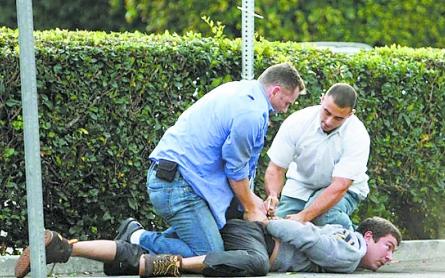 記者顯然不是保鏢的對手,貝克漢姆的兩名保鏢都曾經(jīng)是海軍陸戰(zhàn)隊(duì)隊(duì)員。他們很快就將記者制服,并專業(yè)地將記者雙手用手銬拷起來壓在地上。直到警察趕到,記者仍然被反拷在地上。記者的相機(jī)被一名保鏢直接扔到了垃圾桶內(nèi)。警察趕到后,叫來了救護(hù)車,不過當(dāng)事的3人都拒絕接受治療。隨后3人被帶到警察局,不過貝克漢姆已經(jīng)通知律師處理此事! 我們已經(jīng)將事情寫了報(bào)告,目前還沒有人遭扣留或起訴。如果需要,我們會繼續(xù)調(diào)查”,比佛歷山警察局發(fā)言人表示。據(jù)悉,記者在當(dāng)時拍攝的畫面已經(jīng)交給警方。