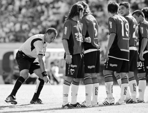 在足球比賽中,雙方隊(duì)員都會(huì)為直接任意球的罰球點(diǎn)與排人墻的位置發(fā)生爭(zhēng)執(zhí),主裁判也一直為確定人墻和足球保持9.15米的距離而頭疼,F(xiàn)在,阿根廷體育記者帕布羅·席爾瓦發(fā)明的神奇噴霧劑卻有望改變這一局面。在近日舉行的阿根廷秋季甲級(jí)聯(lián)賽中,主裁判全部裝備了一種特殊白色噴霧劑,用于幫助確認(rèn)罰球點(diǎn)和人墻的距離,有效減少了球員的爭(zhēng)議。