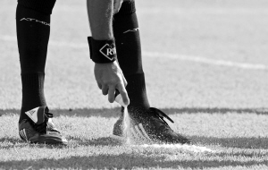 每當(dāng)場(chǎng)上出現(xiàn)犯規(guī)需要處罰任意球的時(shí)候,主裁判就可按照國(guó)際足聯(lián)《足球規(guī)則章程》的規(guī)定,迅速跑到犯規(guī)地點(diǎn),在草坪上噴出白色罰球點(diǎn),然后再到離罰球點(diǎn)9.15米的位置劃出一條白色人墻線,讓雙方隊(duì)員和觀眾一目了然。這不但方便了觀眾觀賽,還讓自己的執(zhí)法更加權(quán)威,也讓雙方隊(duì)員都能心服口服。當(dāng)然,這種方法也讓人心存疑慮,那就是主裁判能否保證通過(guò)步測(cè)+目測(cè)后劃出的線在9.15米左右。