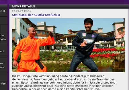 文章最后寫(xiě)道,孔夫子(Konfuzius)在中國(guó)是偶像般的完美化身,而孫祥的積極態(tài)度也讓維也納的球迷們留下了深刻的印象,并博得了教練和隊(duì)友的好感。