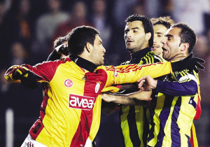 土耳其超級(jí)聯(lián)賽昨晨舉行了一場(chǎng)被稱之“國(guó)家德比”的焦點(diǎn)大戰(zhàn)。最終加拉塔薩雷0:0戰(zhàn)平費(fèi)內(nèi)巴切。比賽結(jié)果雖然平淡,比賽過程卻異;鸨ち,比賽最后時(shí)刻雙方球員起了激烈沖突。導(dǎo)火索是加拉塔薩雷隊(duì)的攻擊型中場(chǎng)阿爾達(dá)·圖蘭在比賽的最后一分鐘,與費(fèi)內(nèi)巴切的西班牙國(guó)家前鋒丹尼爾·古伊薩起了摩擦,圖蘭當(dāng)場(chǎng)掌摑古伊薩。雙方球員見狀都失去了理智,最終發(fā)展成為群毆。