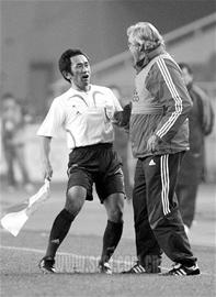昨天當值主裁伊朗裁判對東道主中國隊倒是客氣,不但在上半場判給國足一個大禁區(qū)線上的爭議任意球,而且熱情過余地讓國足連發(fā)了三次,如此情形在國際足壇實屬罕見。